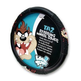 "Taz Attitude Steering Wheel Cover. # Instantly customize your car, truck or suv. # Easy slip on installation. # No tools required. # Protects hands from hot and cold extremes. # Universal size fits almost all wheels mostly sized between 14.5 inches - 15.5"
