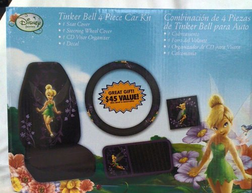 - Tinkerbell 4 Piece Car Kit w/ Seat Cover, Steering Wheel Cover, CD Visor & Decal by Plasticolor