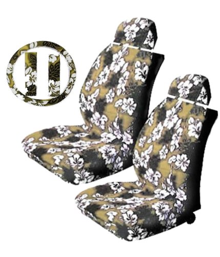 7pc TAN Hawaiian Hibiscus Seat Covers Combo Front Low Back Seat Covers with Head Rest Covers Steering Wheel Cover and a Set of Shoulder Pads Review