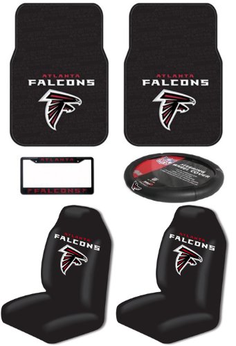 NFL Atlanta Falcons 6 PC Auto Accessories Combo Kit - Rubber Floor Mats, Seat Covers, Steering Wheel Cover and Chrome License Plate Frame Review