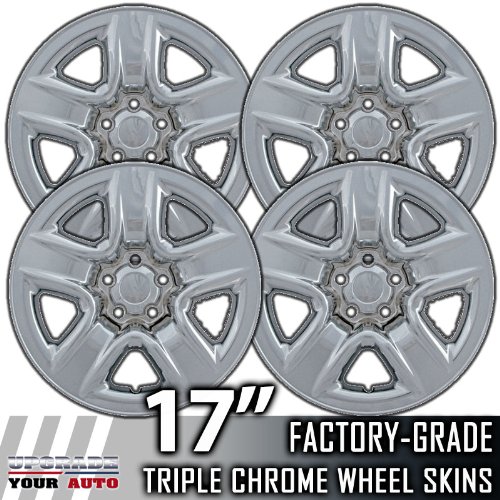 IT'S LIKE GETTING CHROME WHEELS FOR YOUR VEHICLE IN 5 MINUTES!!! This set of (4) Chrome Wheel Covers, also referred to as Hubcap Wheel Covers or Overlay Wheel Skins are made of STRONG, DURABLE, TRIPLE CHROME PLATED, light weight ABS construction. The Chrome Wheel Skins match the manufactures chrome perfectly and are hands down the best quality in the business!!! Cover up the factory "silver" wheels with these, exact OEM factory replica "CHROME OVERLAY WHEEL SKINS". Every Chrome Wheel Skin Cover is equipped with all the necessary high quality retaining clips or tabs to allow a very fast, solid and secure installation. These chrome wheels skins go over your existing factory silver wheels, turning them into chrome wheels within minutes!!! Get the look and appearance of a true Factory Chrome Wheels at a fraction of the cost. ***YOUR FACTORY WHEELS MUST BE AN EXACT MATCH TO THE CHROME WHEEL SKIN COVERS FOR PERFECT FITMENT***