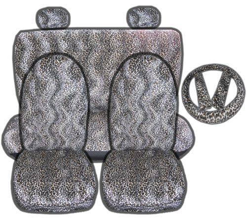 9pc Tan Cheetah High Back Seat Covers, Bench Cover with Head Rest Covers and Steering Wheel Cover with Shoulder Pads Review