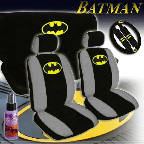 New Design 12 Pieces Batman Classic Logo Car Seat Covers Set Includes Front and Rear Seat Cover, Steering Wheel Cover, Seat Belt Covers and a Travel Size Purple Slice Review