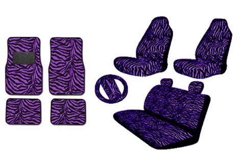 Premium New Style Purple Zebra 13pc High Back Front Seat Covers, Bench Seat Cover with Head Rest, Steering Wheel Cover with Shoulder Pads, 4pc Front and Back Floor Mats Review